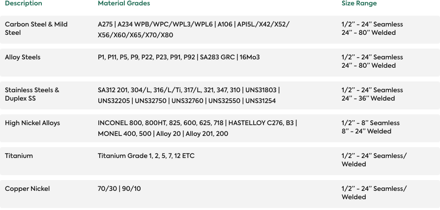 | Alloy 625 Pipe Fittings | 0.5 in | 8 in |