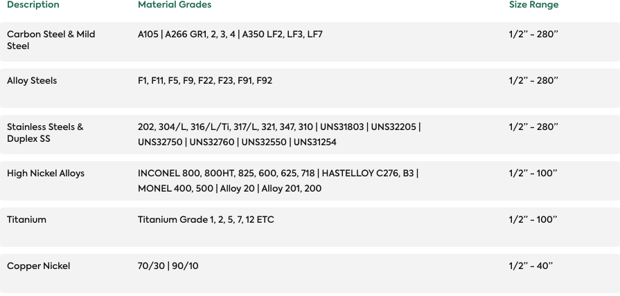 | Alloy 625 Flanges | 0.5 in | 8 in |