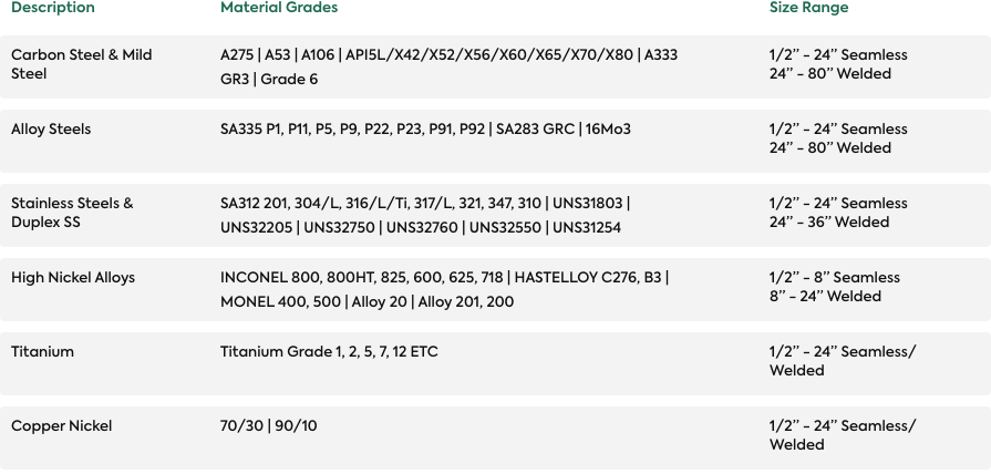 | Alloy 625 Pipe | 0.5 in | 8 in |